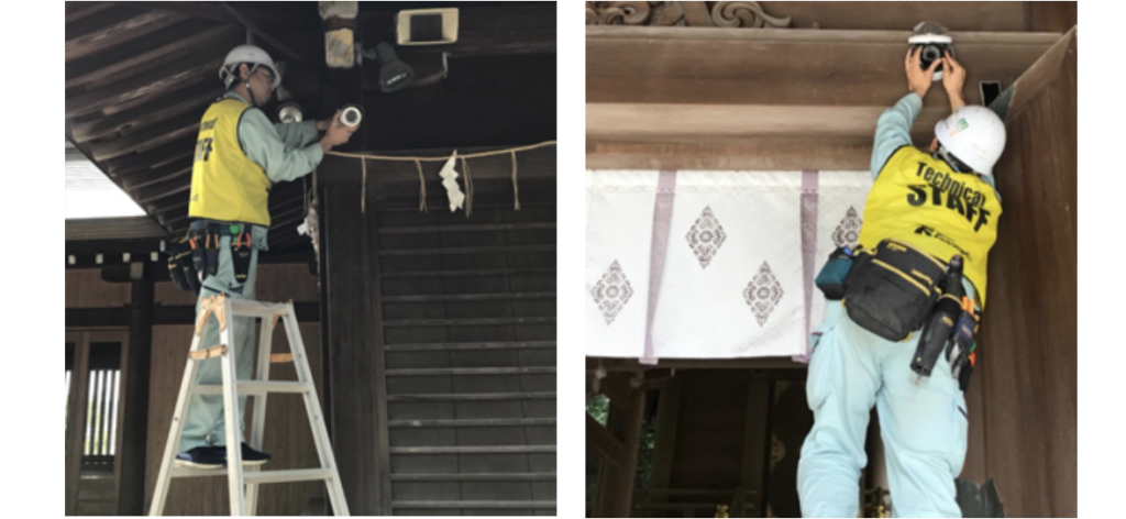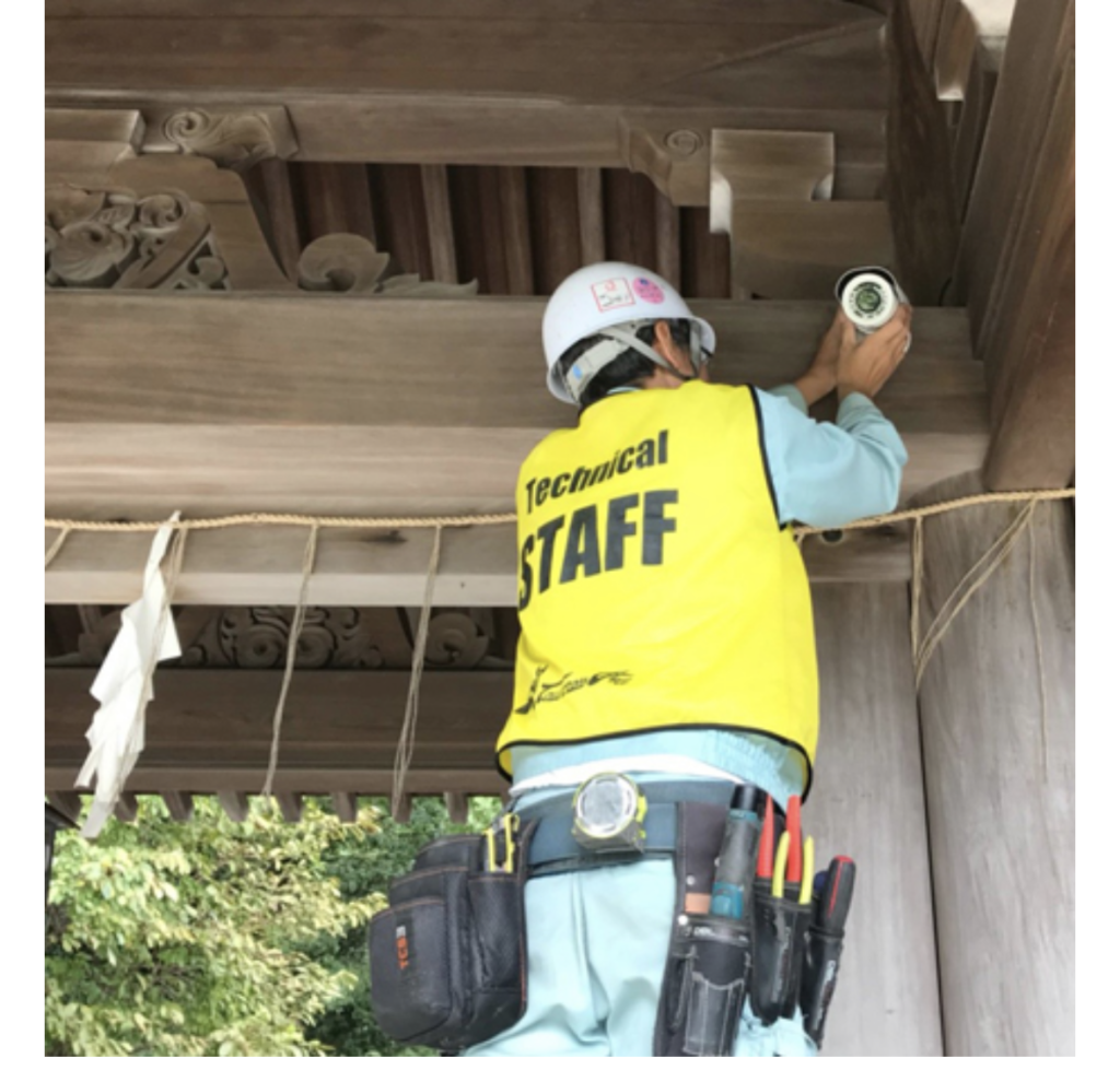 防犯カメラ工事 施工事例 2025.10.152025.10.01 防犯カメラ工事 施工事例 工事について 非常に歴史ある素晴らしい神社様のため、工事には最新の注意を払い、極力使用する部材も同色のものでこだわりながら施工させていただきました。 防犯カメラ設置工事 設置映像
