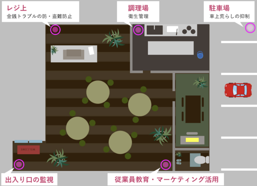 飲食店 監視カメラ設置例