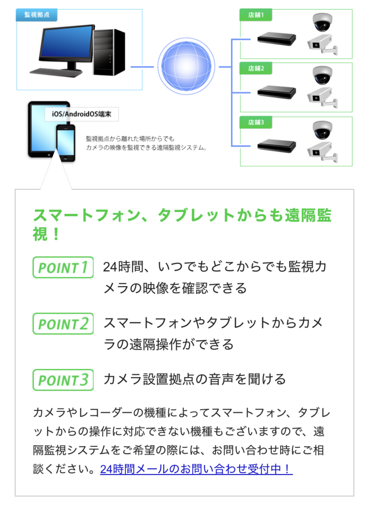 遠隔監視システムの導入により、店舗状況を常時確認できます。